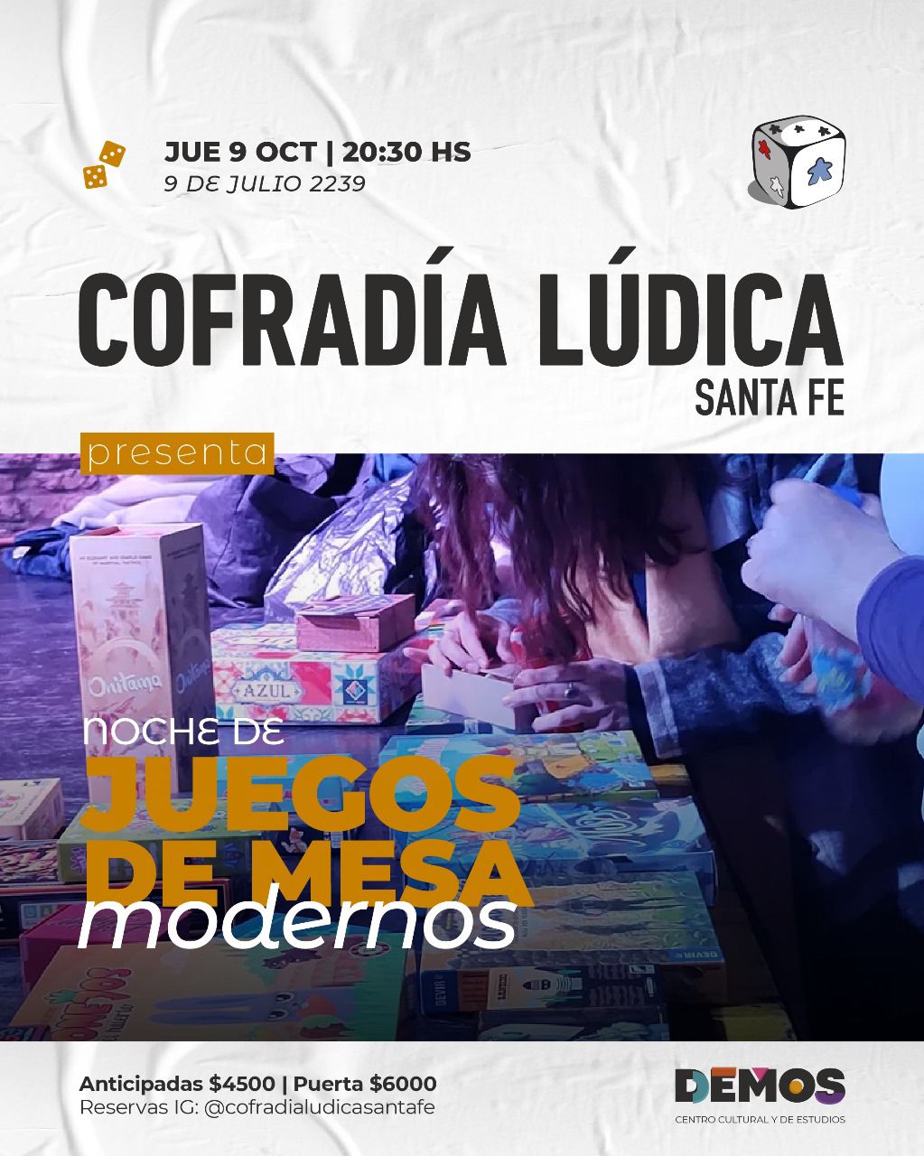 👉🏼Este Jueves 9 de Octubre a las 20:30 hs, DEMOS se llena de estrategia, risas y desafíos con la Cofradía Lúdica Te invitamos a una noche de juegos de mesa modernos, donde vas a poder explorar nuevas estrategias, conocer a otros apasionados y, sobre todo, ¡divertirte!🤩