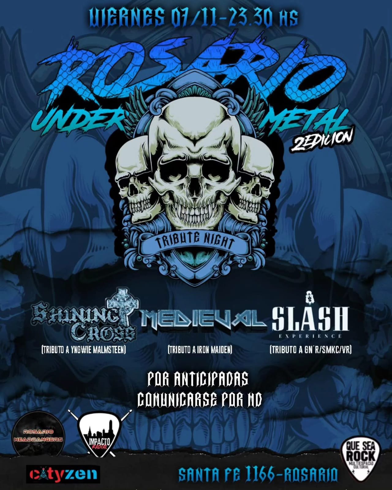 #ROSARIOUNDERMETAL presenta su segunda edición. @slash_experience_arg (Rosario) @shining_cross (Rosario) @medieval_metal (San Nicolás, Bs As) 💣 VIERNES 07/11 desde las 23:30 horas. Anticipadas $8.000 por MD.