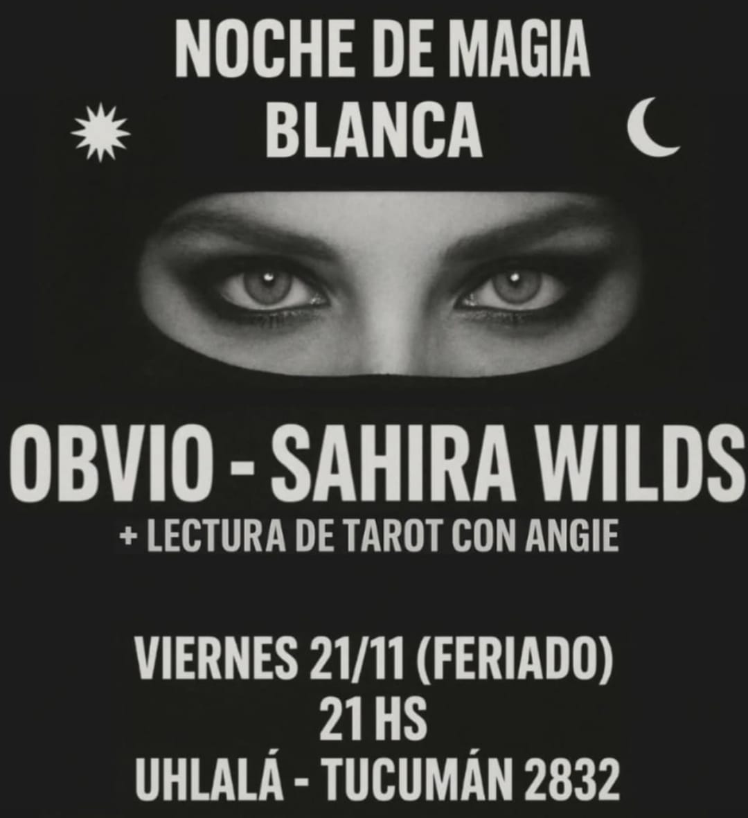 21/11 - “Noche de Magia Blanca” en Uhlalá, calle Tucumán 2832 (Santa Fe). El mismo contará con la presentación en vivo de los grupos musicales Obvio y Sahíra Wilds, y Lectura de Tarot con Angie.