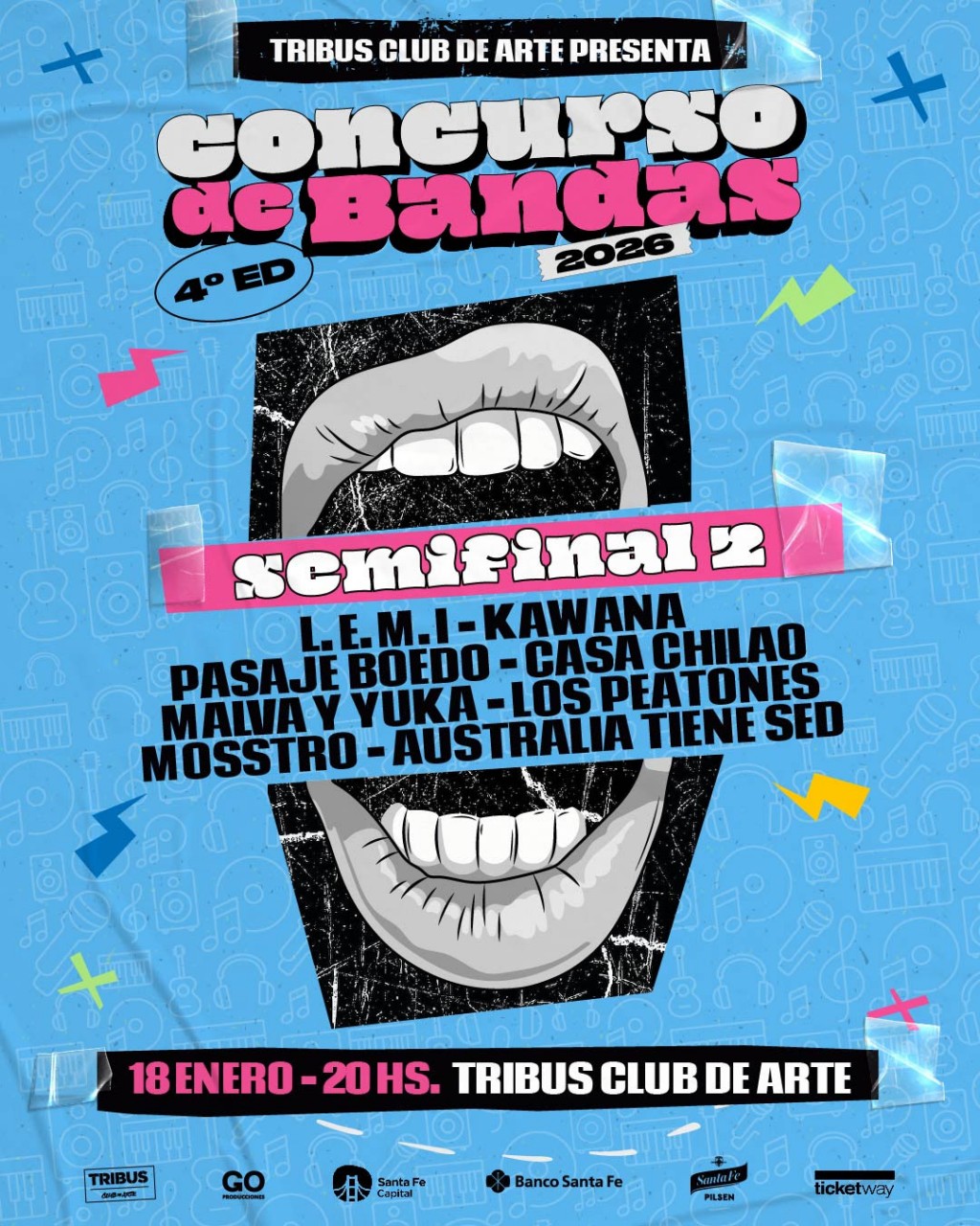 La primera semifinal de la cuarta edición del Concurso de Bandas de Tribus Club de Arte, tuvo como ganadores a Caras Nueva y Kasset, que pasaron a la final que se realizará el domingo 1 de febrero a las 20 h.