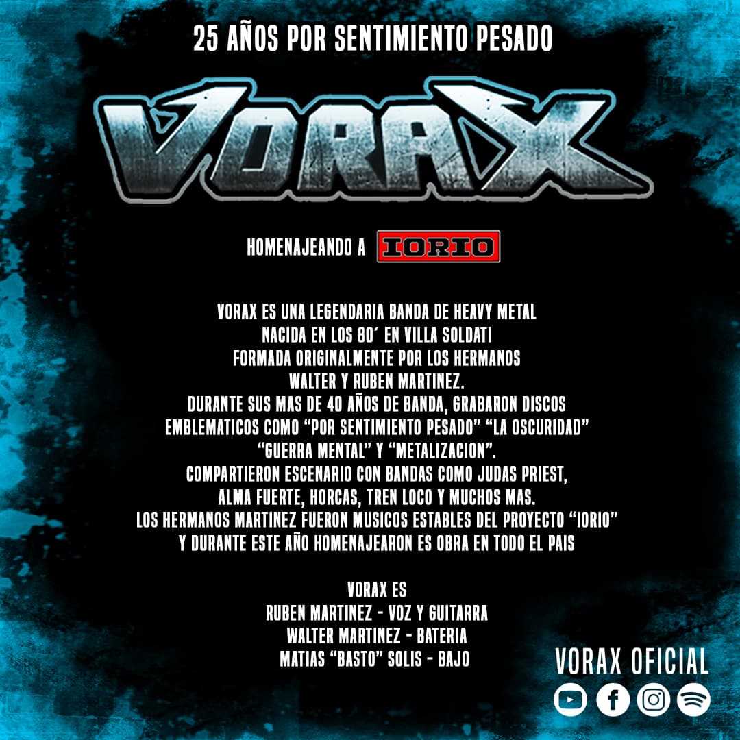 VORAX, banda argentina originaria de Villa Soldati, formada a principio de los 80 por los hermanos Walter y Ruben Martinez. Despues de varios cambios de integrantes y varias producciones independientes que nunca vieron la luz a mediados de la década del 90 su baterista Walter Martinez ingresa a la banda Almafuerte grabando 4 discos en estudio con la banda de Ricardo Iorio.