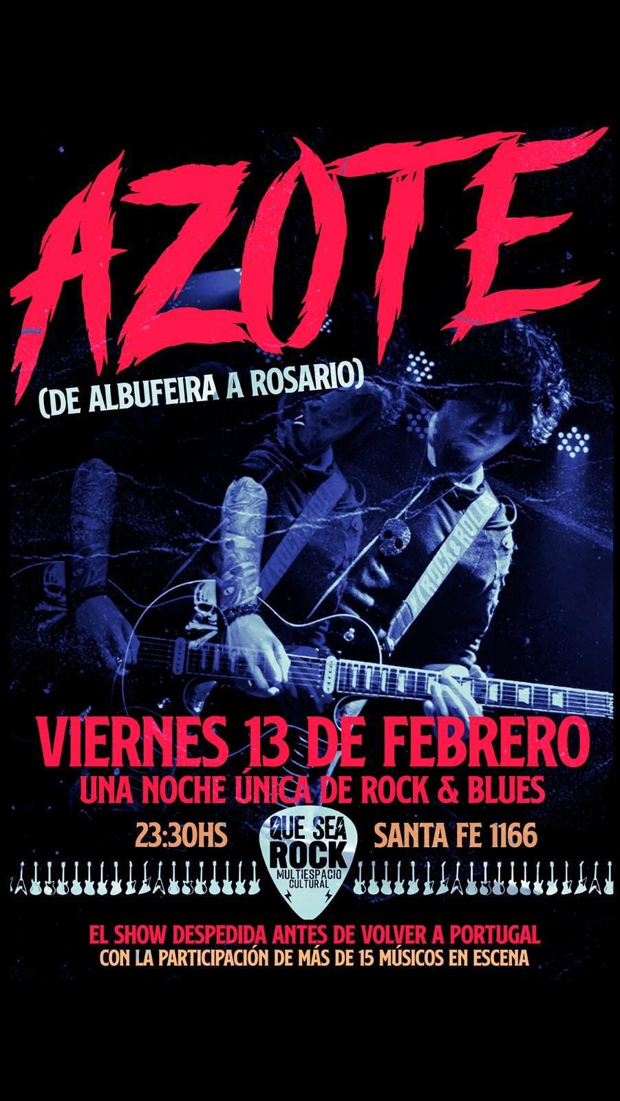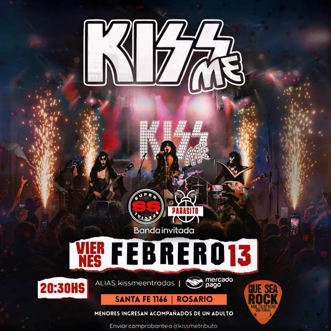 ​VIERNES 13 DE FEBRERO: Doble dosis de Rock ​La jornada comienza temprano con KISS ME, el tributo más impactante a los reyes del rock. ​Apertura: 20:30 hs. ​Banda Invitada: Parásito / Super SS. ​Entradas: Alias kissmeentradas (Mercado Pago). ​Para cerrar la noche, llega AZOTE en su tour "(De Albufeira a Rosario)". ​Horario: 23:30 hs. ​Detalles: Una noche única de Rock & Blues en su show de despedida antes de volver a Portugal, con más de 15 músicos en escena.