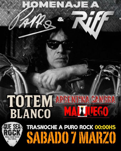 HOMENAJE A PAPPO & RIFF. Con Totem Blanco, Argentina Sangra y Mal Juego. ?Pura m?stica de Carpo! TICKETS EN PUERTA