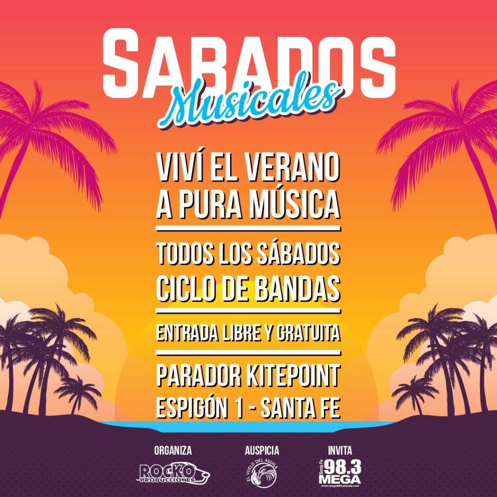 Desde el sábado 8 de enero y hasta el sábado 26 de febrero, vas a tener música en el espigón I, Parador Kitepoint. Bandas de todo el país, con entrada libre y gratuita. Donde vamos a estar sorteando cd, remeras y muchas cosas más.