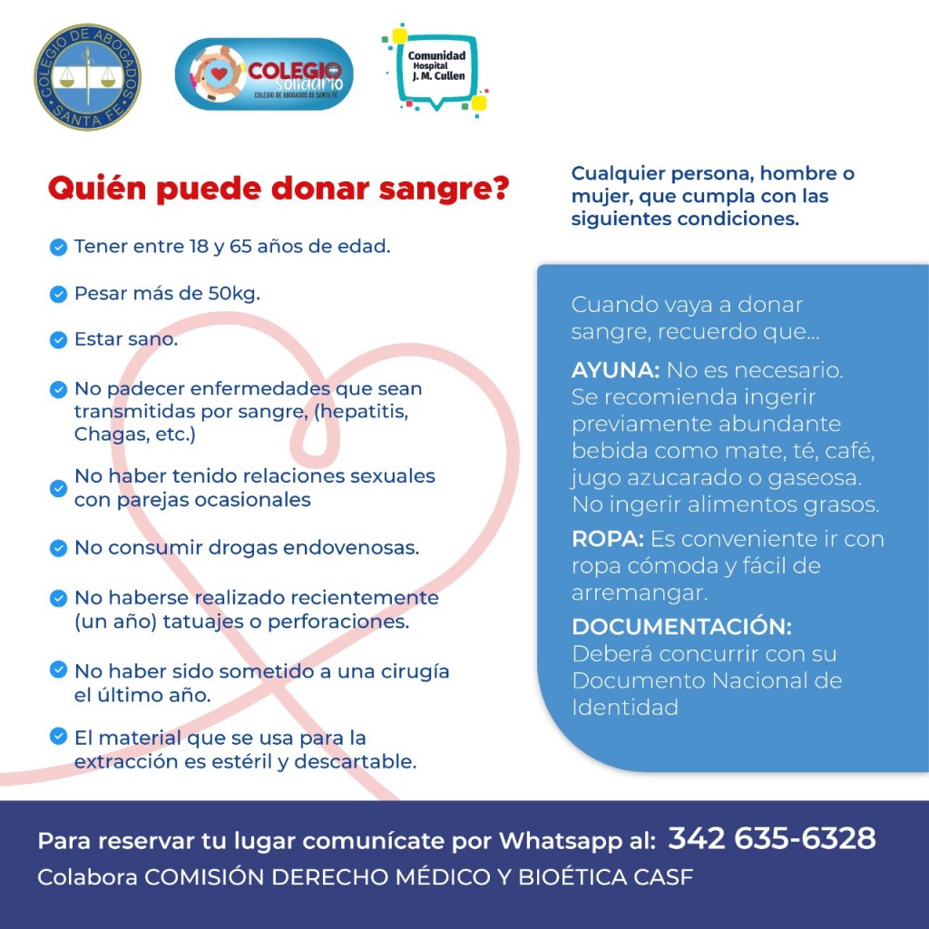 ?’? Jueves 28 de abril desde las 8 hasta las 14 hs, se realizará la Primer Colecta Voluntaria de Sangre del Colegio de Abogados de Santa Fe.