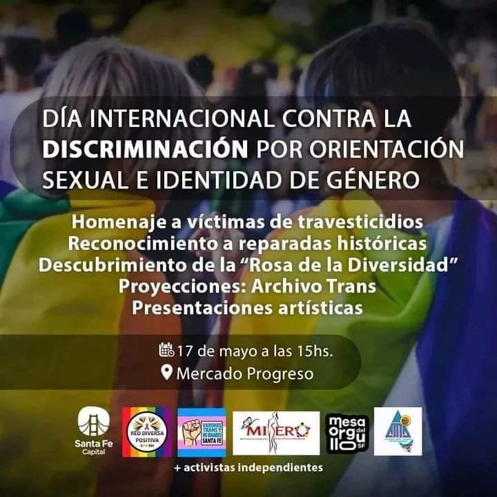 Con ese fin, desde la Municipalidad de Santa Fe, junto a la Mesa del Orgullo de Santa Fe, el Movimiento de Integración Sexual, Étnica y Religiosa (Miser), Red Diversa Positiva, la Asociación de Travestis, Transexuales y Transgéneros de Argentina (ATTTA), la Asociación de Varones Trans y No Binaries de Santa Fe y activistas independientes celebran la efeméride en el Mercado Progreso desde las 15 hs.