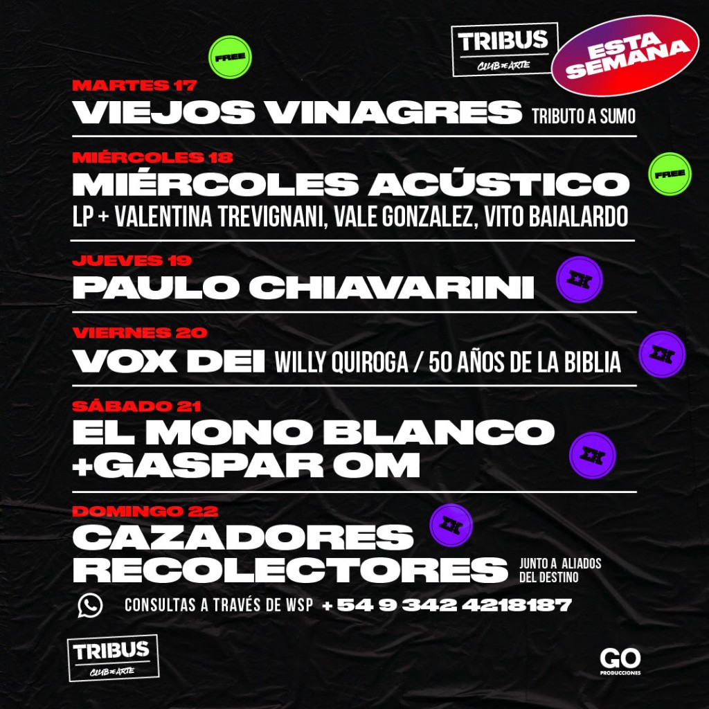 Agenda semanal de Tribus Club de Arte: martes 17 a domingo 22 de mayo