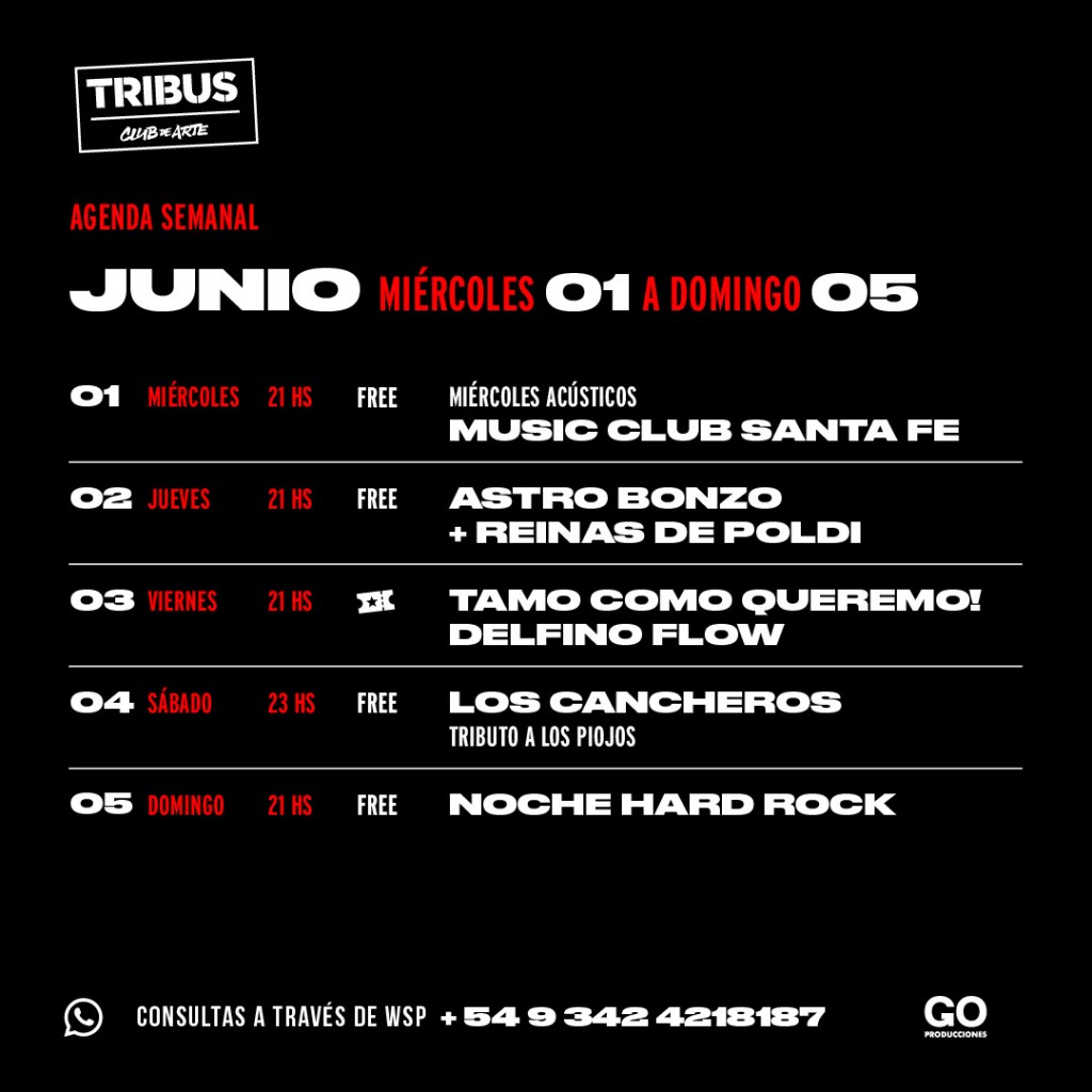 Agenda semanal de Tribus Club de Arte: miércoles 1 al domingo 5 de junio