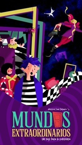 “Mundos Extraordinarios”-Espectáculo de clowns-. “Reymundo” se despierta, se sienta en su sillón y mira televisión. Así hace años. Es el día de su cumpleaños y está solo. El miedo, sus problemas para expresar sus emociones y un pasado que prefiere olvidar, lo llevaron hasta allí. La aparición sorpresiva de dos amigos de la infancia (Walter Ego y Soledad) lo invitan a tomar una bebida chamánica, que cambiará las cosas drásticamente. Un desperfecto técnico con el control remoto, sumergirá a los personajes en una realidad “no ordinaria” con un estado de consciencia ampliado. En esa nueva dimensión aparecerá una viajera inter dimensional: el hada holística “Maga Juana” que es experta en arreglar controles remotos y será la guía para que “Reymundo” viaje a hacia “Mundos Extraordinarios”. Las puertas de su casa se transformarán en puertas dimensionales que lo conectarán con personajes en realidades paralelas: deberá cuidar un regalo muy especial, superar su miedo a las arañas y encontrar una llave para volver a su “realidad cotidiana”. El público, será el protagonista en tiempo real de la aventura del protagonista. Una historia contada a través del juego de la técnica clown, cargada de absurdo, grotesco y momentos surrealistas. Una obra que nos ayuda a entender la realidad como un holograma dónde el protagonista experimenta lo “real” mientras toma consciencia, que él mismo está creando y transmutando...su propia historia.