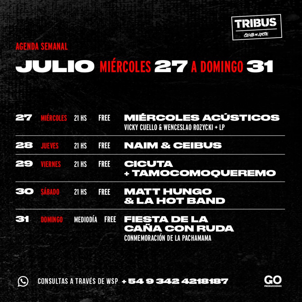 Agenda semanal de Tribus Club de Arte: miércoles 27 al domingo 31 de julio