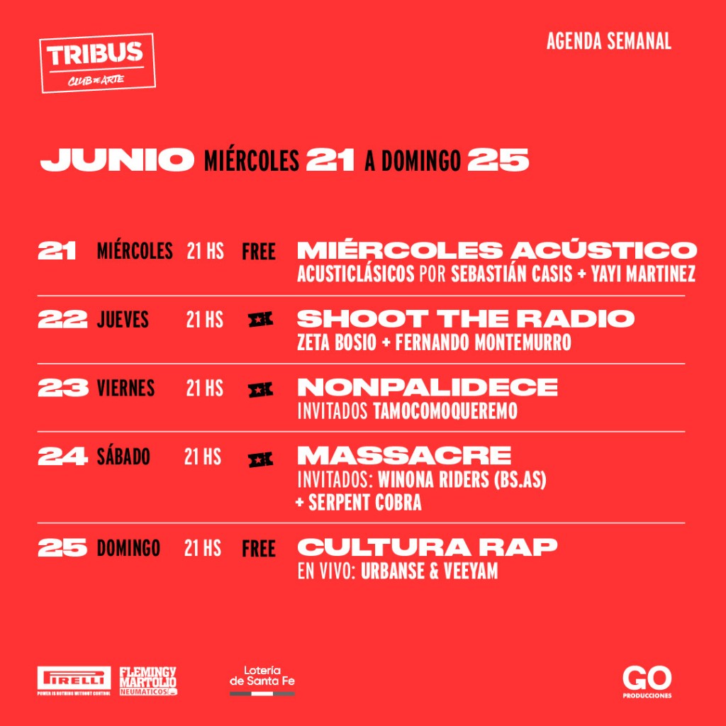El sábado 24 de junio a las 21 hs, Massacre vuelve a Tribus para adelantar los temas de su próximo disco "Nueve", junto a todos sus clásicos. Como bandas invitadas estarán Winonra Riders y Serpent Cobra. Entradas a la venta en boletería de Tribus y a través de Ticketway y sus puntos de venta.