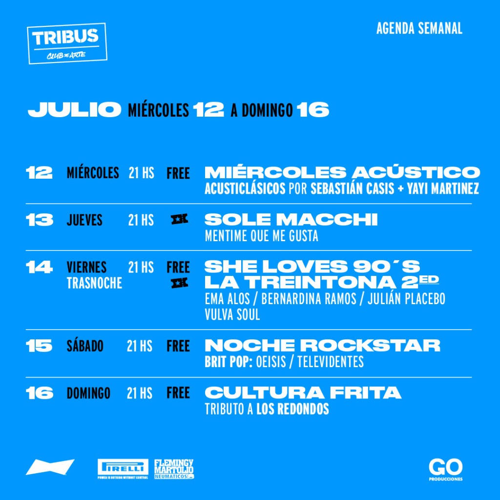 Agenda semanal de Tribus Club de Arte: miércoles 12 al domingo 16 de julio