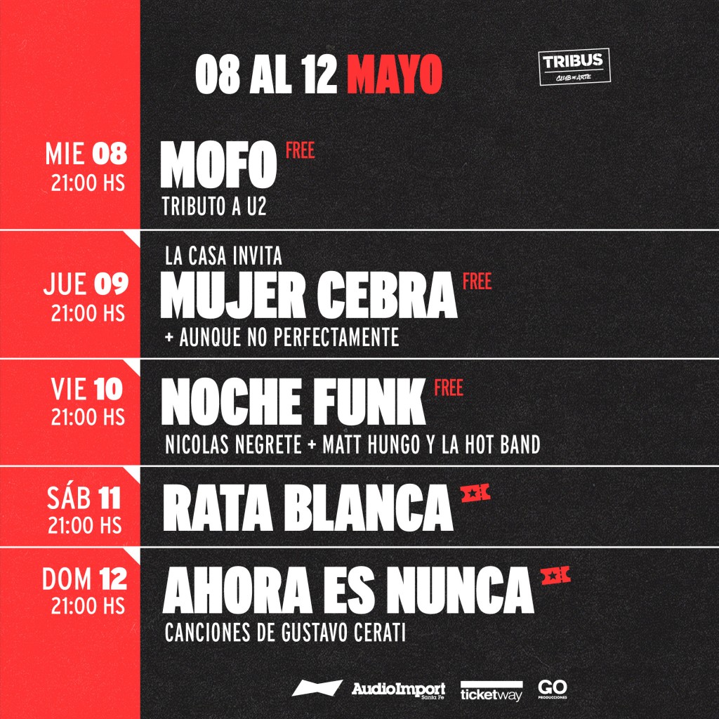 El domingo 12 de mayo a las 21 hs, llega a Tribus el espectáculo "Ahora Es Nunca", homenaje a Gustavo Cerati. Tras celebrar los 30 años de "Amor Amarillo", el primer disco solista del artista, la banda interpretará una selección de las mejores canciones de Gustavo. Entradas a la venta en boletería y a través de Ticketway.