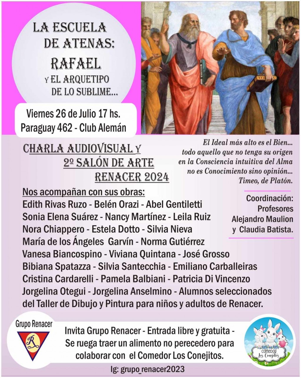 Se ruega traer un alimento no perecedero para colaborar con el comedor "Los Conejitos"