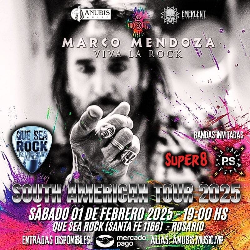 Anubis Music y Emergent Metal Fest anuncian la llegada a Rosario del bajista estadounidense Marco Mendoza con su gira Viva La Rock South America Tour 2025.