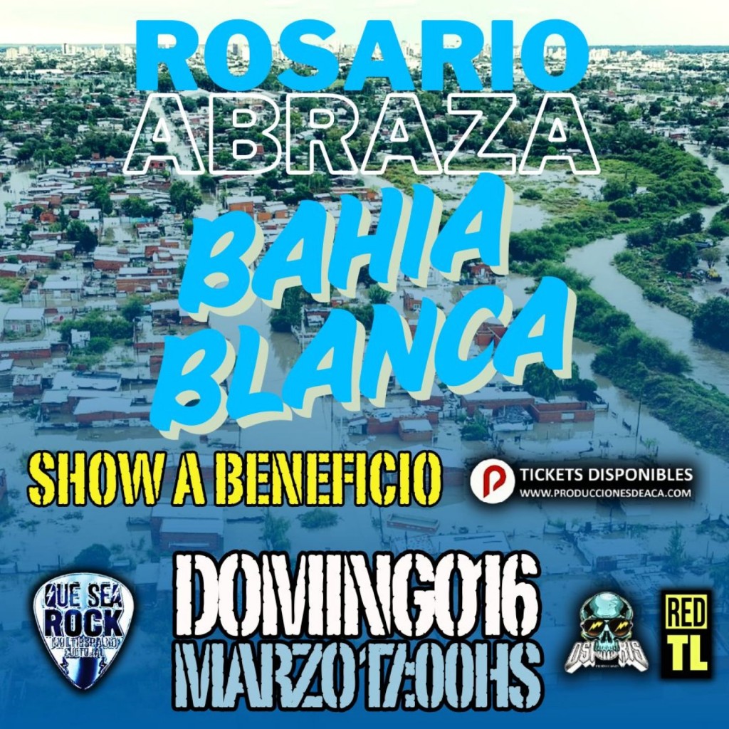 El domingo 16 de marzo en "Que Sea Rock" Santa Fe 1166 - Rosario - Argentina - desde las 17 hs se llevara a cabo el festival a beneficio por la ciudad de Bahía Blanca, valor de la entrada $ 4000 + una botella de agua potable o cloro
