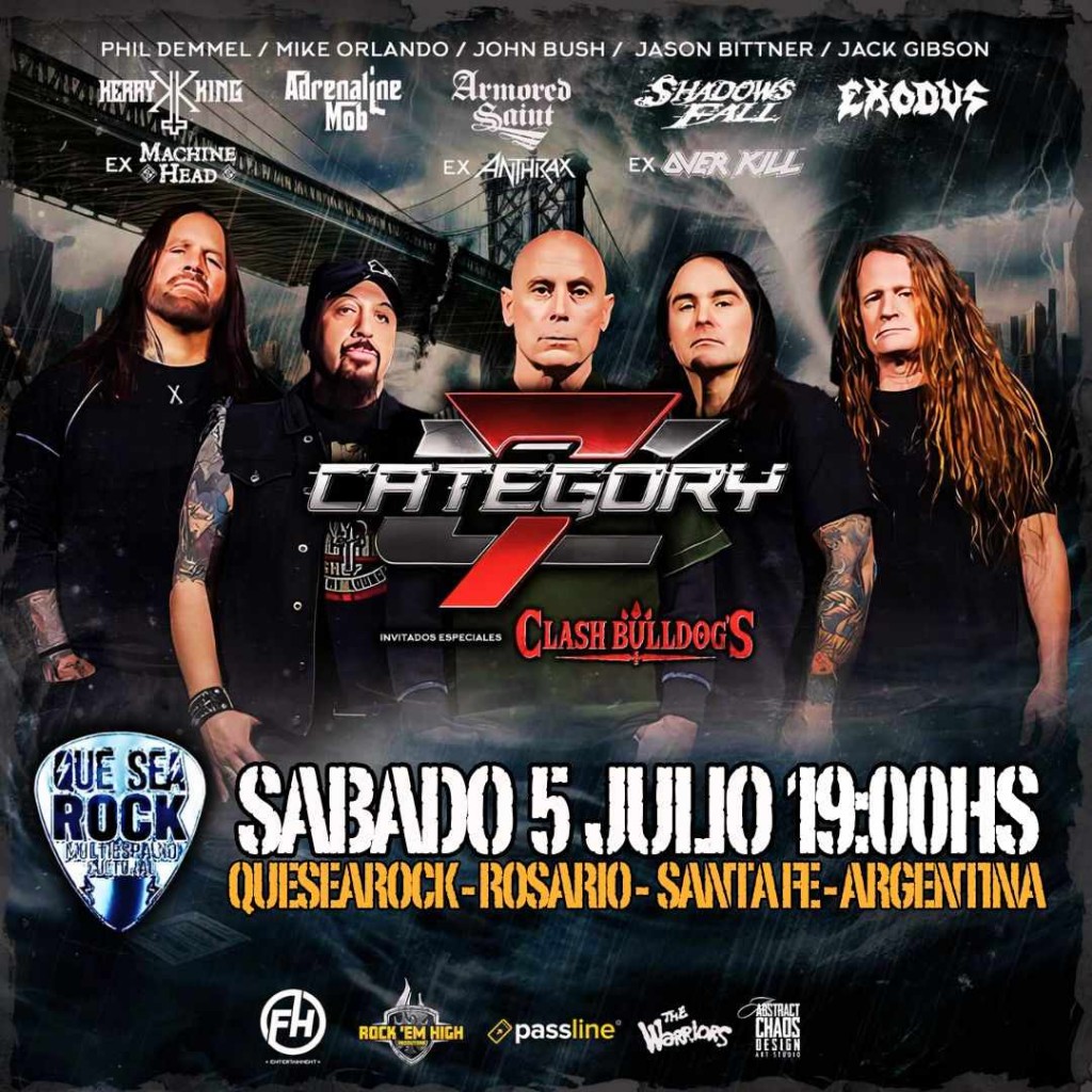 CATEGORY 7 es el proyecto formado por el vocalista John Bush (ARMORED SAINT, ex ANTHRAX), los guitarristas Phil Demmel (Kerry King, ex MACHINE HEAD, ex VIO-LENCE) y Mike Orlando (ADRENALINE MOB), el baterista Jason Bittner (SHADOWS FALL, ex OVERKILL), y el bajista Jack Gibson (EXODUS).