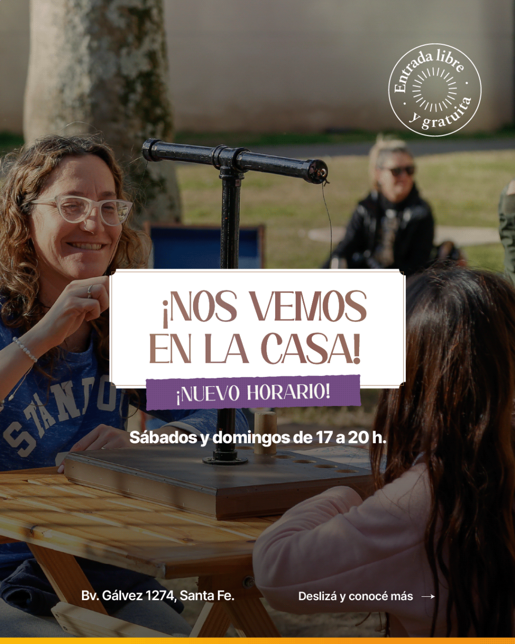 La Casa de la Cultura (Bv. Gálvez 1274) abre sus puertas los sábados y domingos de abril de 17 a 20h con diversas propuestas para toda la familia. La entrada es libre y gratuita.