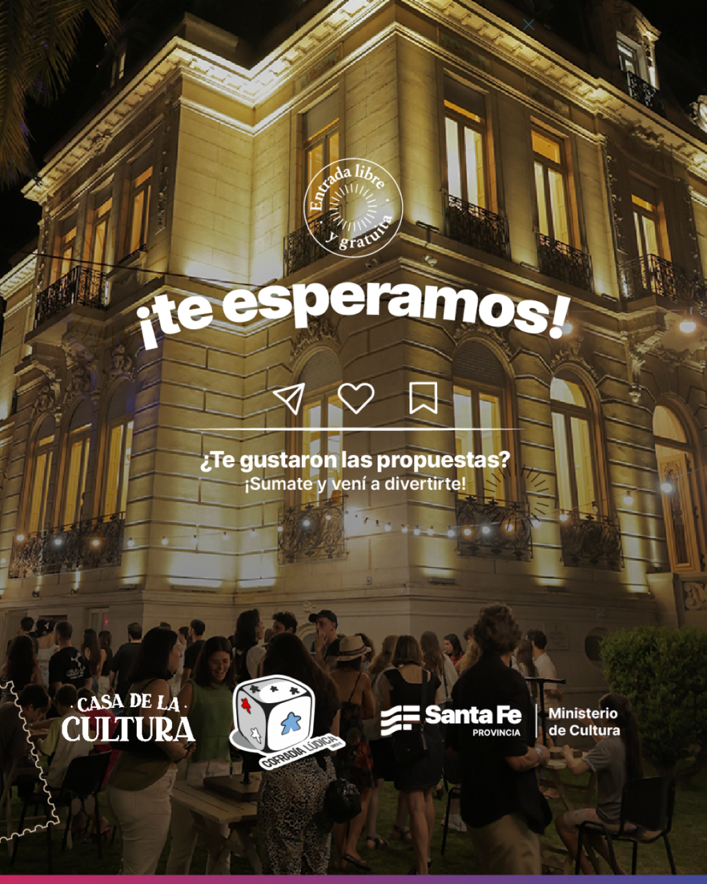 Te esperamos este domingo 27 de 17 a 20h. en Casa de la Cultura (Bv. Gálvez 1274, Santa Fe) para disfrutar de una tarde de juegos en los jardines de la vivienda. La entrada es libre y gratuita.