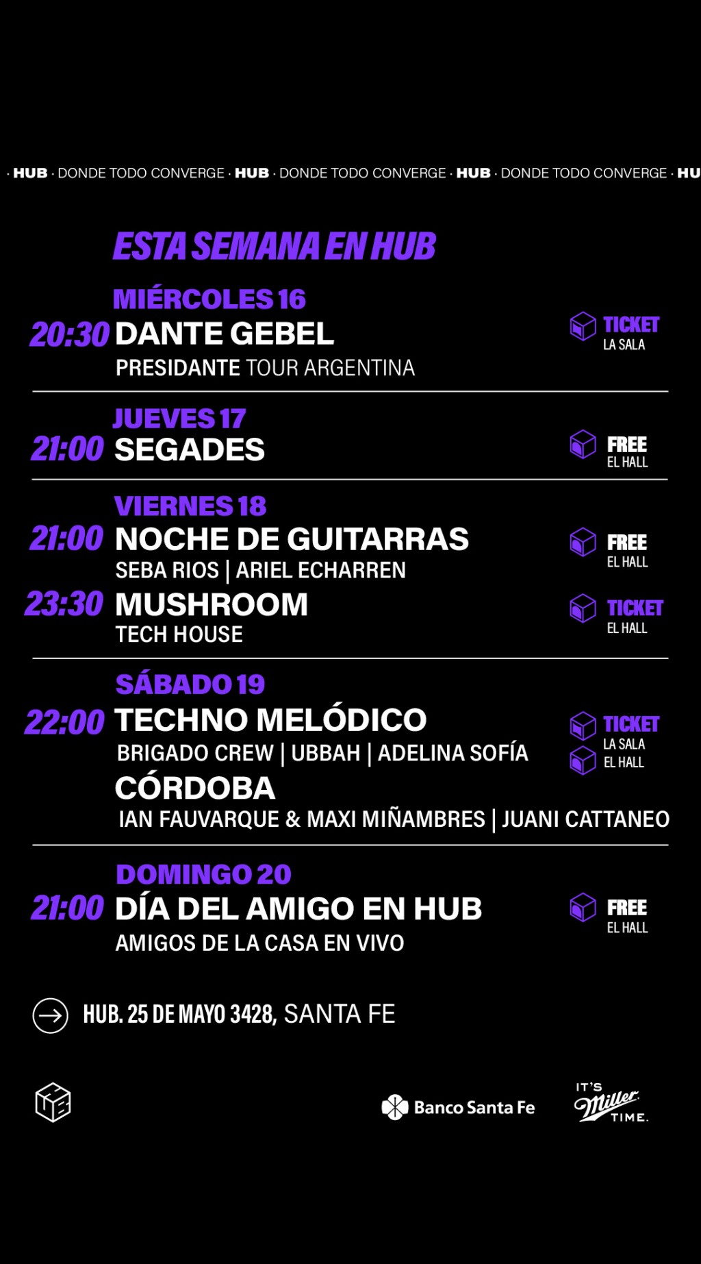 El miércoles 16 de julio a las 20.30 hs, Dante Gebel llega a Santa Fe con su tour “Presidante 2025”. Dante comparte historias que van desde la risa hasta las lágrimas, abordando temas como la vida, el barrio, la muerte, la nostalgia y relatos cotidianos que nos llevan a reflexiones profundas del alma. Entradas agotadas.