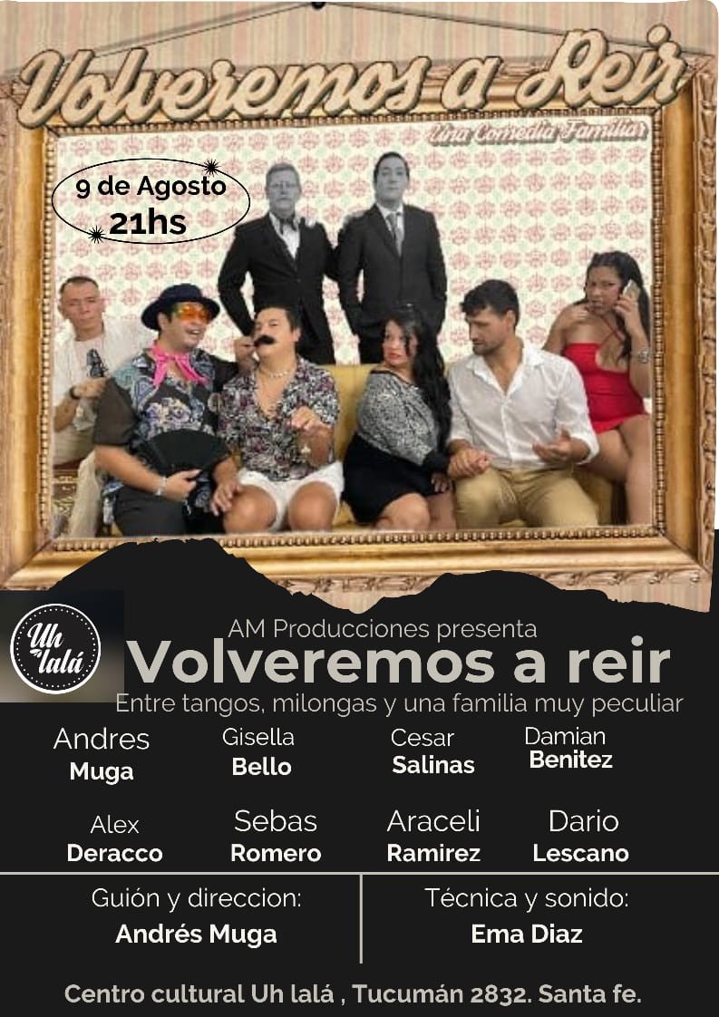 Sábado 9 de agosto a las 21 HS en Uh Lalá, sala cultural, Tucumán 2832, Santa Fe.