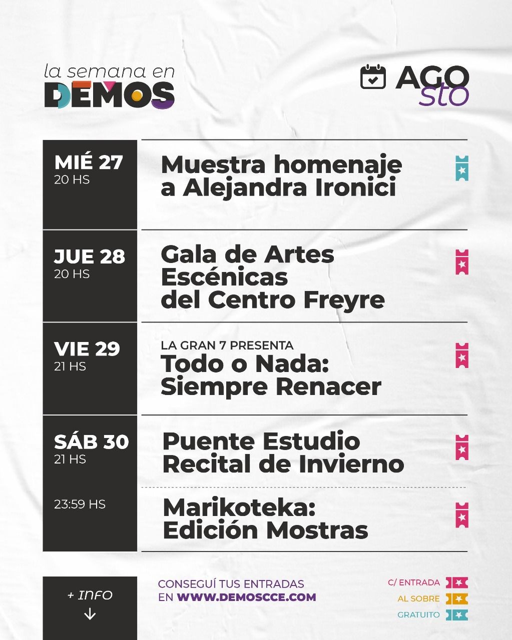 Este jueves 28 de agosto a las 20 hs viví una noche única en Demos Espacio Cultural con dos presentaciones que te van a transportar a mundos llenos de creatividad y emoción: