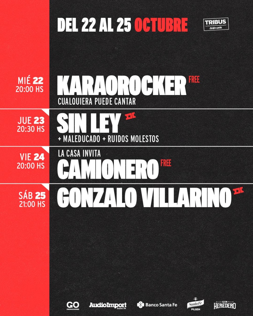 El jueves 23 de octubre a las 20.30 h, después de ocho años, Sin Ley, la legendaria banda de punk rock regresa a Santa Fe en el marco del tour nacional “A los chicos de mi barrio”. Como invitados estarán Maleducado y Ruidos Molestos. Entradas a la venta en boletería y a través de Ticketway.